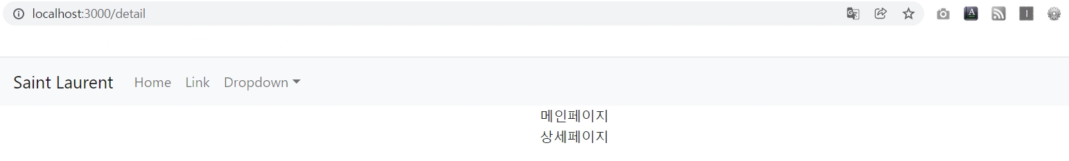 React Router는 매칭 되는 것을 한꺼번에 다 보여주기 때문에 '/detail' 경로로 접속해도 '/' 경로 내용이 보이는 것이다. 이를 해결하기 위해서는 Route에 exact라는 속성을 추가하면 경로가 정확히 일치할 때만 보여준다.